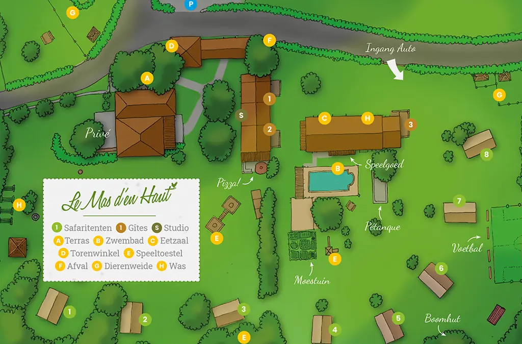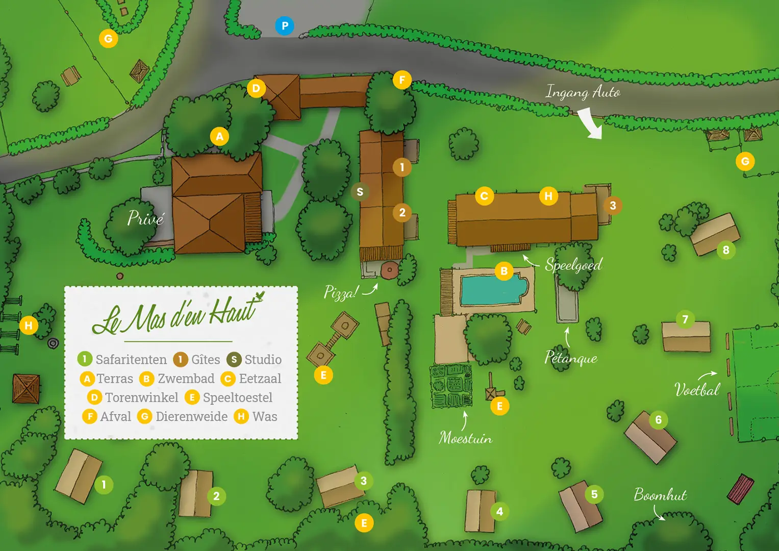 Bedrijven spelen een belangrijke rol in de strijd tegen de klimaatverandering, de bescherming van de biodiversiteit en het milieu. Hoe kleinschalig we ook zijn; op le Mas d'en Haut doen we er alles aan om onze rol hierin serieus te nemen. Uiteraard scheiden we ons afval, zijn we zuinig met water en is het niet de bedoeling om met het vliegtuig naar ons toe komen. Daarnaast gebruiken we zo veel mogelijk verse en lokale producten in de keuken, bouwen we met duurzame materialen, hebben we een prachtige luchtzuiverende plantenwand in de feestzaal geïnstalleerd, verwarmen we Gîte 3, ons huis en het water met houtpellets, hebben we een "voedselbos"-tuin en permacultuur-moestuin aangelegd en verwarmen we het water van de zwembaden met een warmtepomp. Ook hebben we schaduw gecreëerd bij de Safaritenten en Gîtes door middel van het planten van bomen en door het plaatsen van zonneschermen en tarps om zo te voorkomen dat een airconditioning nodig is. En, wat we ook belangrijk vinden, is om de lokale bevolking bij het domaine te betrekken. Zo werken we met lokale mensen bij verbouwingen, als hulp in de keuken, in de bediening en in de schoonmaak. Tenslotte zullen we blijven doorgaan met de ecologische transitie van ons kleinschalige vakantieparadijs.